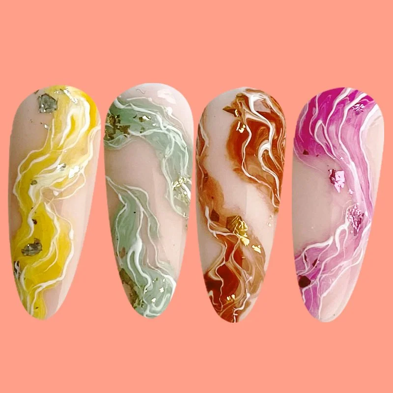 Con il nuovo corso di formazione Gamax potrai imparare la particolarissima tecnica di decorazione unghie Marble Nails.